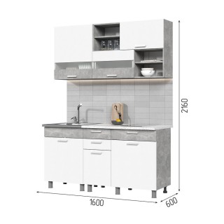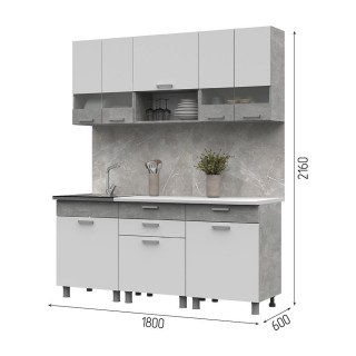 Длина: 1600 мм Глубина верхних шкафов: 317 мм Глубина нижних шкафов: 445 мм Глубина нижних шкафов со столешницей: 600 мм Высота верхних шкафов: 706 мм Высота нижних шкафов: 806 мм Материал корпуса: ЛДСП Материал фасада: ЛДСП Цвет корпуса: Белый Шагрень Цвет фасада: Сирень ..
