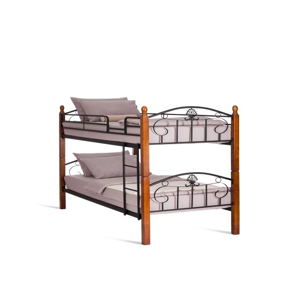 Двухъярусная раскладная (возможно использовать как 2 одноярусные) кровать. Материал: ножки - дерево гевея; основание, изголовье, изножье - металл. Усиленная база.