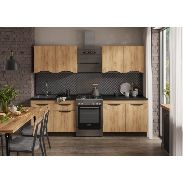 Длина 2,0м. Материал: лдсп/вставки венге мдф. Столешница: постформинг 38мм, "Черный", раздельная 2шт*100см.