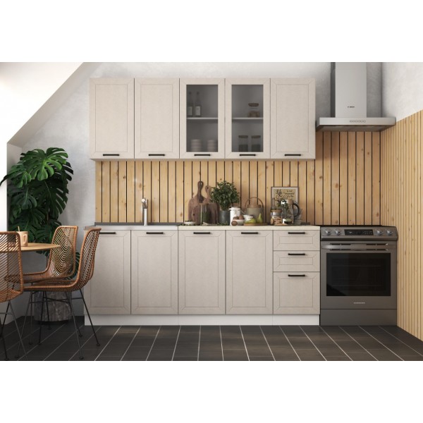 Кухонный гарнитур Виола Нео Классика Вегас от производителя Стиль – это воплощение современного элегантного дизайна, который превратит вашу кухню в центр притяжения и уюта. Гарнитур выполнен с белоснежным корпусом из ЛДСП, создающим ощущение простора и света в любом помещении. Его фасады из МДФ представлены в разнообразной палитре матовых оттенков, каждый из которых добавляет уникальный штрих к общей атмосфере.