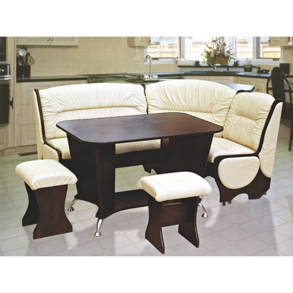Роскошь белого цвета в сочетании с мягкими складками украсит любую кухню. Под сиденьями ящики для хранения. Универсальная сборка право/лево.