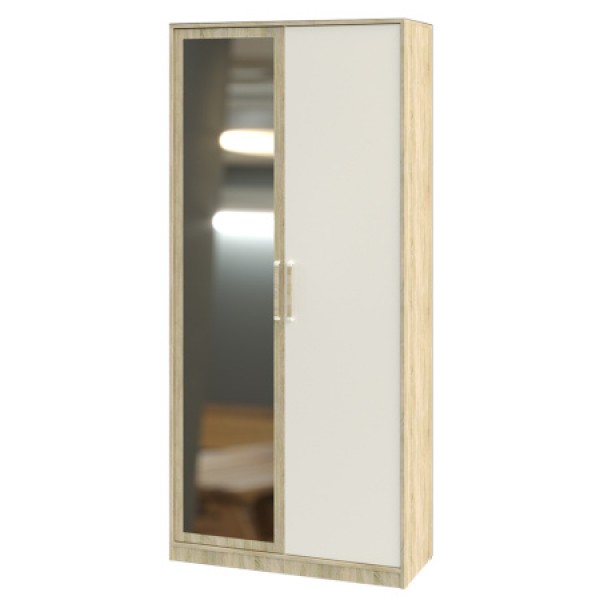 Габаритные размеры: Ширина, см 100 Высота, см 220 Глубина, см 43 Дополнительные характеристики: Материал ЛДСП Цвет фасада Белый Цвет корпуса Сонома