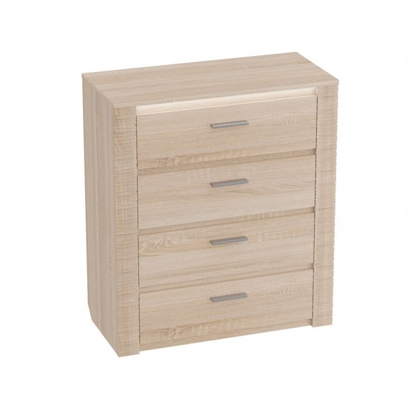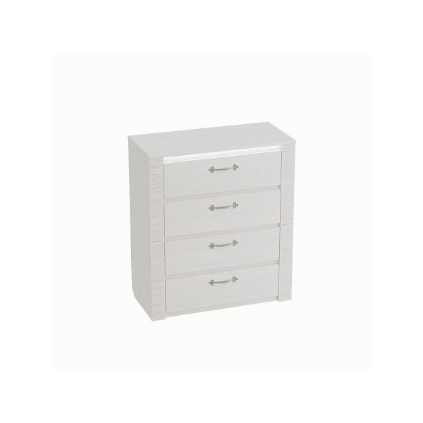 Комод оснащен четырьмя выдвижными ящиками на роликовых направляющих. Под столешницей имеется стеклянная панель (5 мм), предназначенная для установки светильника. Комплект подсветки (светильник и блок питания) приобретается отдельно. Блок питания рассчитан на подключение шести светильников.