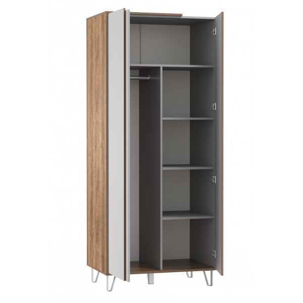 Ширина, мм: 900 Высота, мм: 2110 Глубина, мм: 383 Материал: ЛДСП Цвет корпуса/цвет фасада: кейптаун/серый/ДВПО белый