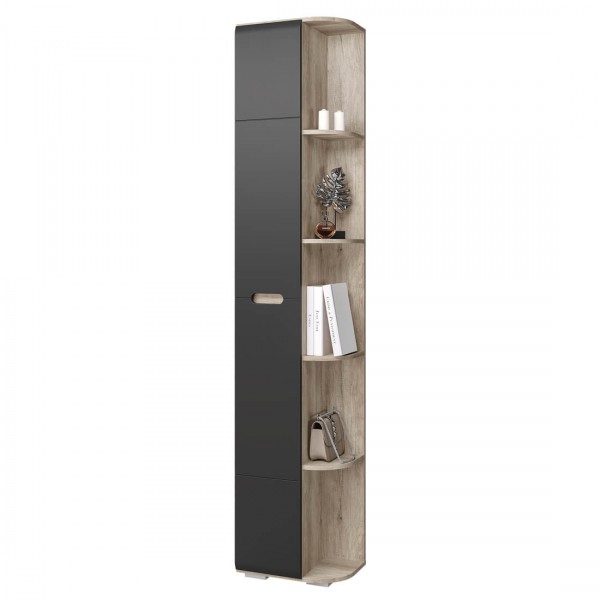 Материал фасада: МДФ Цвет корпуса/цвет фасада: дуб каньон/серый F24; белый MF07 Материал корпуса: ЛДСП Глубина, мм: 300 Высота, мм: 2176 Ширина, мм: 441