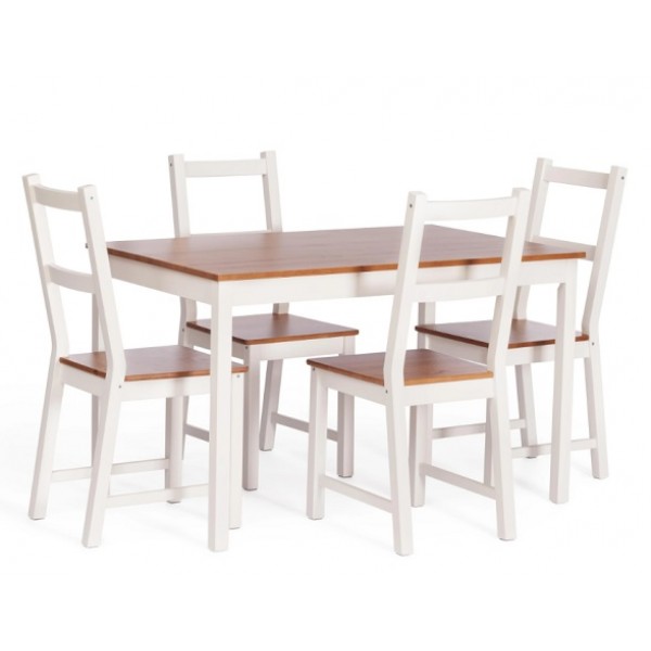 Обеденный комплект Соната из Дельфийской коллекции — это стильный и функциональный элемент интерьера вашей кухни или столовой. В комплект входят стол и четыре стула с прочным и долговечным каркасом из массива сосны. Античный оттенок столешницы и сидений стульев в сочетании с белым цветом придаёт интерьеру элегантность. Этот комплект будет хорошо смотреться как в городской квартире, так и в загородном доме, в столовой или на кухне, на террасе или веранде. Он позволяет разместить до четырёх человек и подходит для комфортного и длительного времяпрепровождения. Мебель поставляется в разобранном виде и легко собирается согласно инструкции.