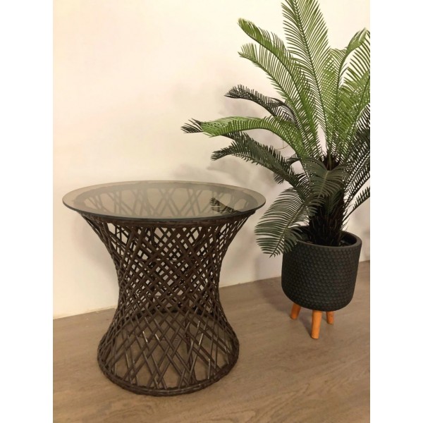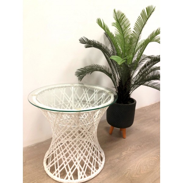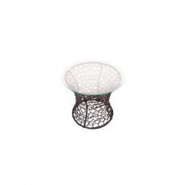 Цвет белый и коричневый . - Диаметр 56 см; высота 51 см. - Цельносварной каркас, столешница - закалённое стекло, плетение из эко-ротанга.