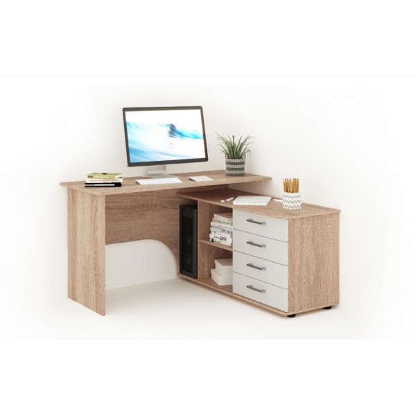 Габаритные размеры (шир./гл./выс.): 1300х1215х746 мм Цвет корпуса-Дуб сонома Цвет фасадов-Белый