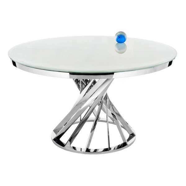 Стол TWIST/T933-1 dia 130*73 201#Stainless Steel+White Tempered Glass(12mm)