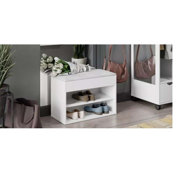 Функциональная тумба под обувь. Имеет открытую нишу для бережного хранения обуви и место под откидной крышкой. Данное пространство можно использовать для хранения обувных аксессуаров и различных мелочей, что без сомнений является преимуществом новинки.